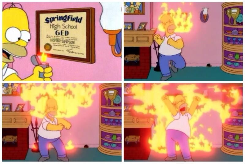 A personal favourite of mine is Homer’s jubilation at being accepted into college, which leads to him disdainfully burning his high school diploma (and the house) while proclaiming his genius (“I am so smart! I am so smart! S-M-R-T!”). To this day, I inadvertently hum the tune to myself whenever I accomplish any task of consequence in my role in MTU.